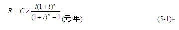 對(duì)于設(shè)備的折舊費(fèi)一般考慮采用定額計(jì)算法,再考慮對(duì)于投資金額利息的回收部分,最后采用下式計(jì)算: