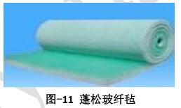 用于制作初、中效的材料一般有無紡布和蓬松玻纖氈兩種,蓬松玻纖 氈的價格相對于無紡布要高一些。蓬松玻纖氈的初阻力也會相對于無紡布 高一些,但是蓬松玻纖氈(見圖-11)的容塵量要比無紡布優秀得多。