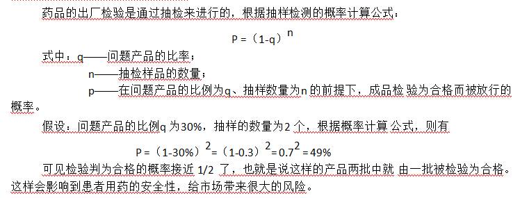 藥品的出廠檢驗是通過抽檢來進行的,根據抽樣檢測的概率計算公式: